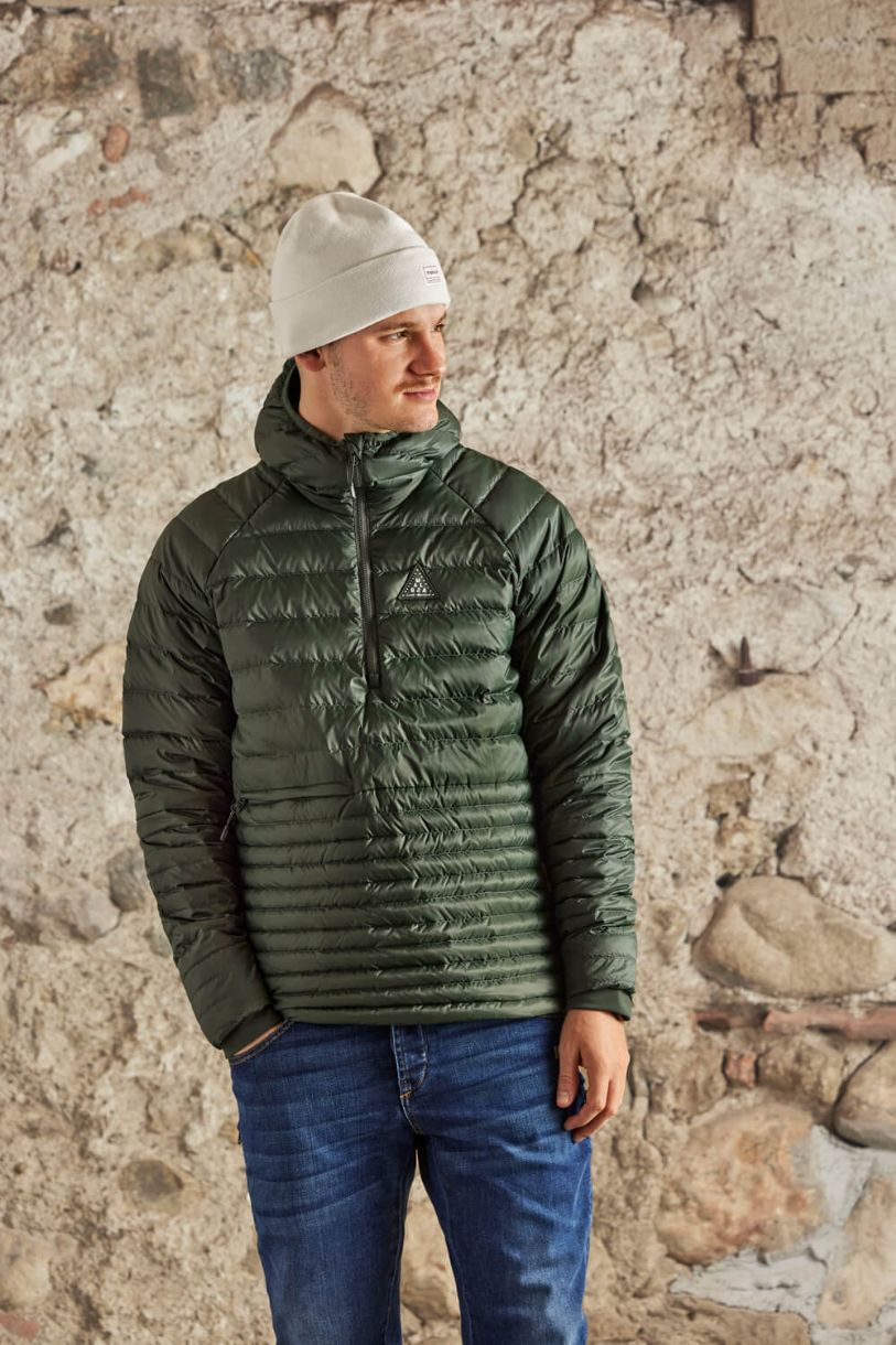 Doudoune à capuche avec garnissage en duvet recyclé, ouverture zippée sur le devant, ouverture latérale dans la couture latérale, petite poche avec fermeture éclair dissimulée. La couche iso est coupe-vent et compacte dans la poche, elle fonctionne donc seule ou comme deuxième couche sous une coque - comme compagnon sportif en ville ou comme compagnon léger pour les randonnées et les activités de plein air.