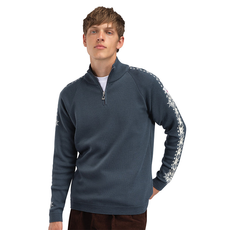 Le pull Dale of Norway Geilo H, nommé d’après la célèbre station de ski norvégienne Geilo, allie style sportif et performance. Confectionné en 100 % laine mérinos ultra-douce Zefir, ce pull à maille double durable offre confort et liberté de mouvement pour un mode de vie actif. Il est doté d’une demi-fermeture éclair et d’un col mi-haut pour plus de polyvalence, tandis que le motif répétitif de la rose norvégienne à huit pétales sur les manches et la grande rose sur le dos lui confère un look raffiné et intemporel.