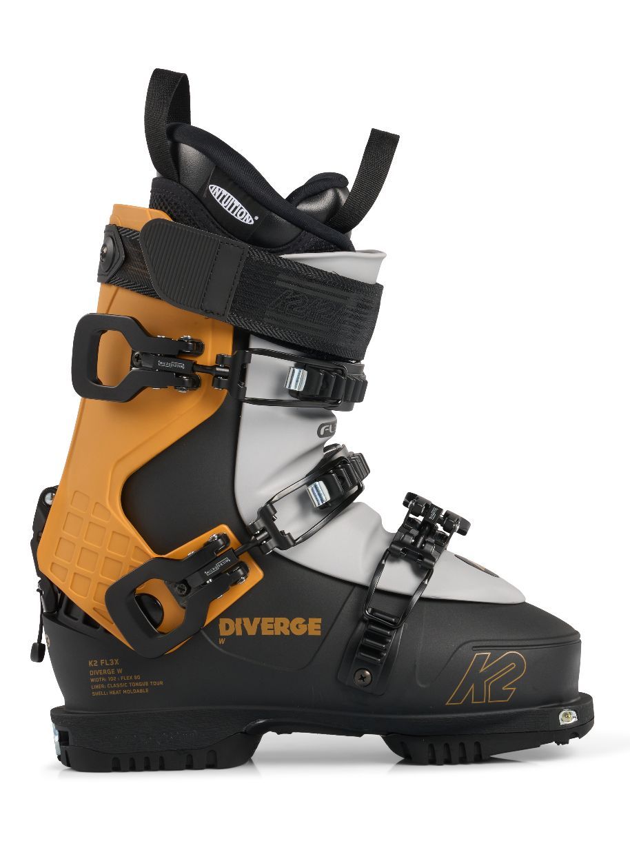 Conçue pour les skieuses qui veulent monter léger et descendre fort, elle est équipée d’une coque Diverge Tour 3 pièces ultra légère, d’une doublure Intuition Pro Tour pour un fit personnalisé et confortable, et d’une languette flex 90, parfaite pour un bon compromis entre flexibilité et maintien.